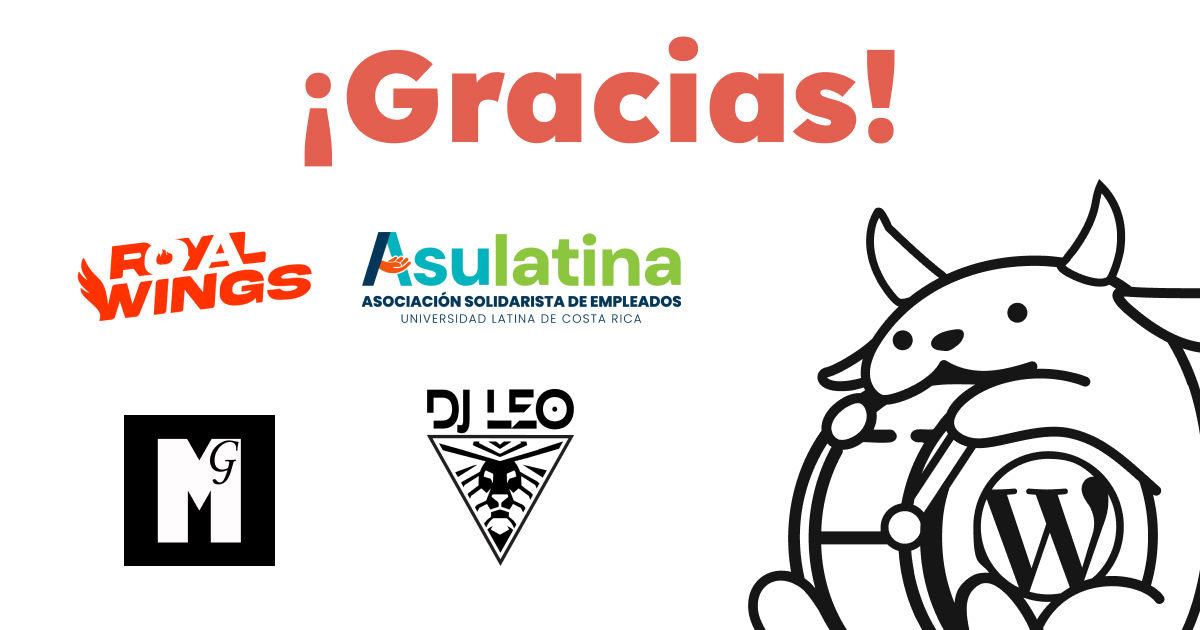 El WordCamp San José 2025 vibra con la energía, la creatividad y el cariño de quienes creen en la comunidad. Por eso queremos dar un enorme ¡gracias! a nuestros patrocinadores PyME en especie, que con su apoyo harán de esta edición una experiencia inolvidable.
